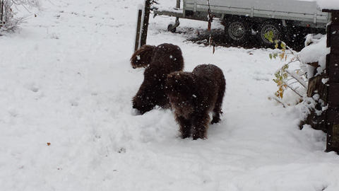 Mittlerweile haben wir alle unseren Umzug gut überstanden und unsere Mädchen fühlen sich in unserer Villa Bärentraum wirklich sauwohl. Na und als dann auch noch der erste Schnee fiel, waren unsere Ladys nicht mehr zu halten.