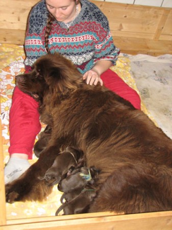 Amelia zeigt ihrem Frauchen Jacky glücklich ihren Nachwuchs
