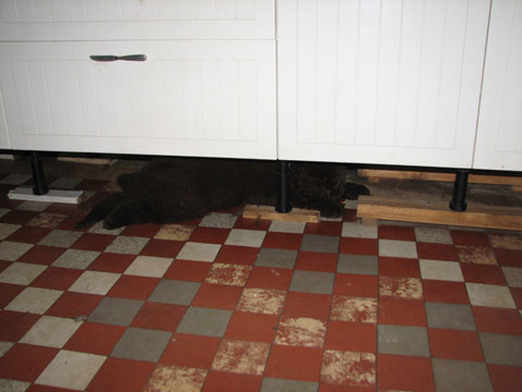 Barnabas hat es sich in der Küche richtig bequem gemacht