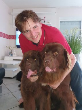 Dein Einstand ins Leben war wahrlich nicht einfach. Deine Mama Amelia kämpfte nicht nur um das Leben von dir und deiner Schwester sondern auch um ihr eigenes. Nach einem Kaiserschnitt in letzter Minute haben deine Schwester und du dann das Licht dieser Welt erblickt. Von der ersten Sekunde an warst du ein echter Kämpfer und mit all deiner Kraft hast du dich ins Leben gekämpft. Deine kleine Schwester Grace hatte leider nicht so viel Glück und so hörte ihr kleines Herz nach kurzer Zeit auf zu schlagen. Wir taten zusammen mit deiner Mama Amelia alles um dir dein Leben als Einzelbärchen so schön wie möglich zu machen aber es war schon sehr traurig mit ansehen zu müssen wie traurig du so allein warst. Es dauerte ein bisschen aber in Zusammenarbeit mit deinen Tanten und deinem Onkel haben wir es geschafft dir eine tolle Babyzeit zu bescheren. Du wurdest von allen nach Strich und Faden verwöhnt und hast es sichtlich genossen das wir dich alle verhätschelt und vertätschelt haben. Deine Mama hat natürlich deine Erziehung, zusammen mit deiner Oma Carlotta, übernommen. Deine beiden Tanten Berni und Krümel haben dich beschmust und mit dir wann immer es ging ausgiebig gekuschelt. Deine beiden Cousinen Enja und Edana haben dafür gesorgt das du im Garten viel Spaß hattest und den nötigen Neufiblödsinn lernst den junge Neufis unbedingt wissen müssen. Tja und dein Onkel Barbossa hat dich als Bärenmann unter seine Fittiche genommen und dich in die Welt der großen Bären eingeführt. Er hat dir alles mit auf den Weg gegeben was seiner Meinung nach für junge Bärenmänner wichtig ist.